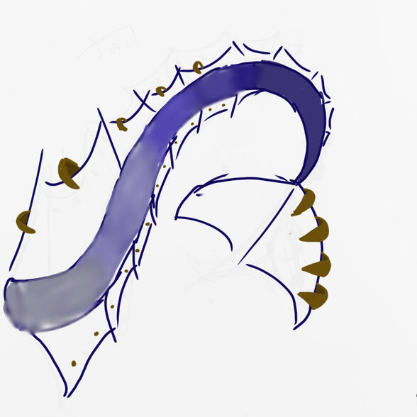 A reference guide of Lake's tail and it's piercings! The color transition would obviously be smoother, and his fins a lighter grey than his skin, but what can you do when drawing with your finger!To the right, a drawing of Lake done by @bro_celiandre